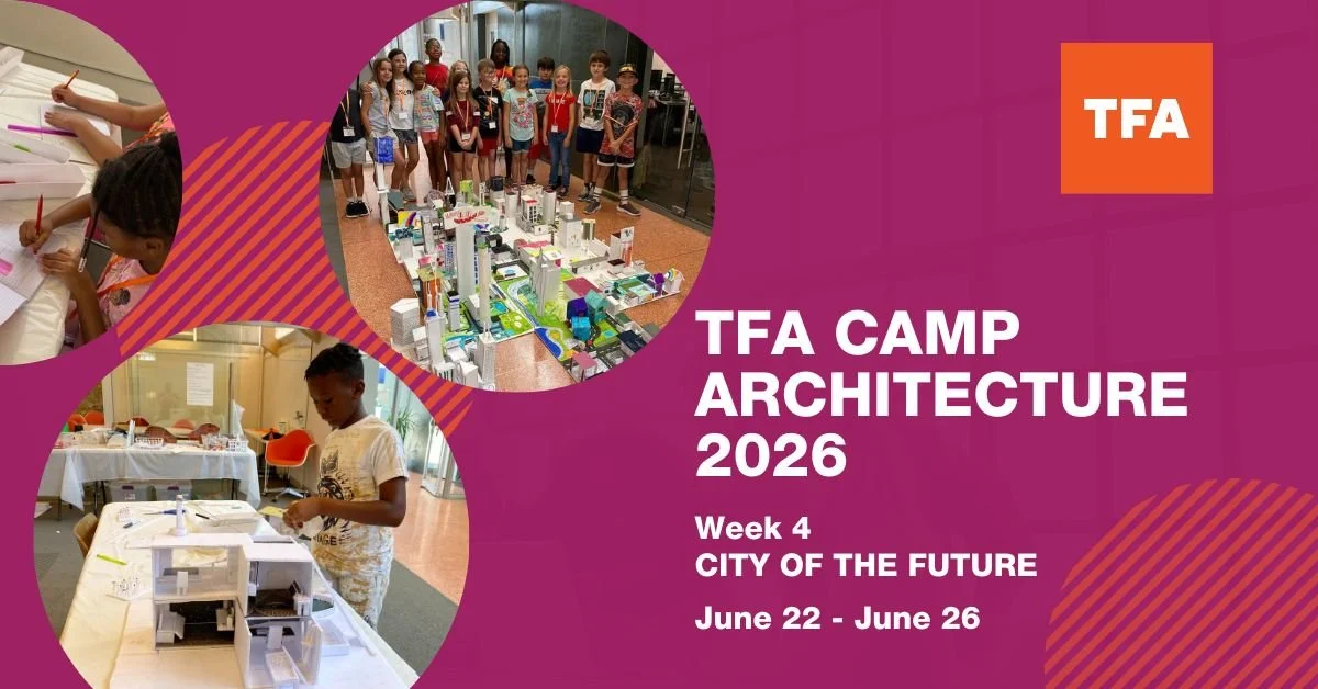 Join TFA for Camp Architecture 2026! CITY OF THE FUTURE (WEEK 4) June 22 - 26, 9:00-4:00